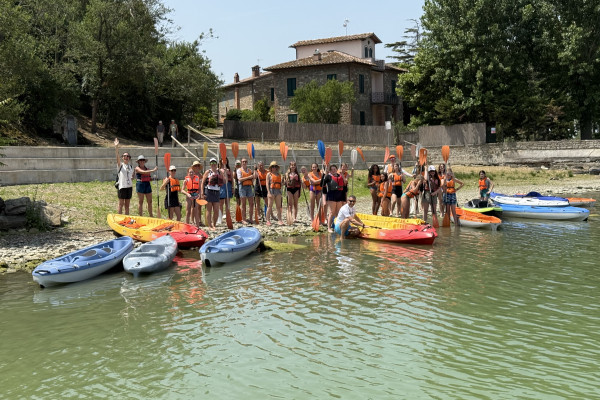 Our beach is located at the closest point to reach it, exactly 1.6km, so the experience is accessible to everyone, even with little experience in kayaking. Normally it takes about 35 minutes to reach it. The routes towards Monte del Lago or San Feliciano, on the other hand, are feasible for everyone.